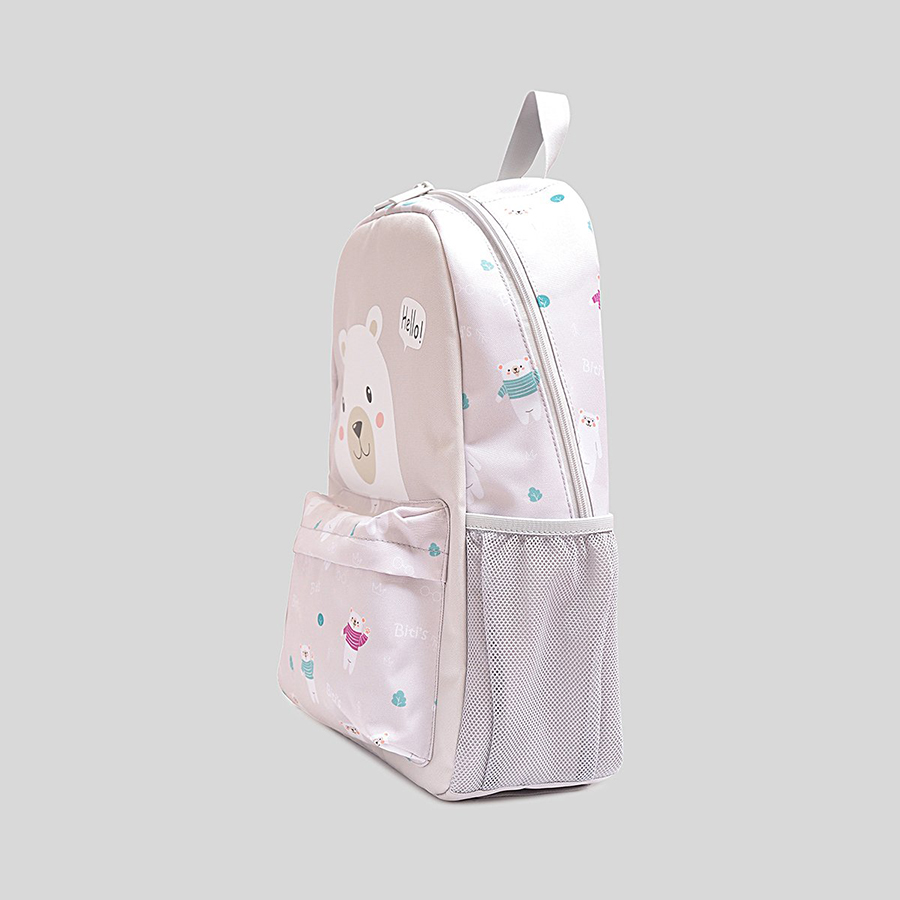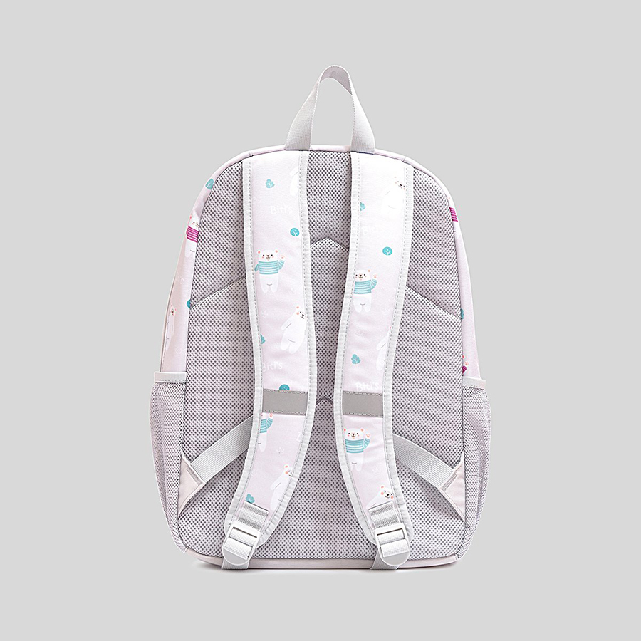 Quai đeo được thiết kế bản to, có lớp đệm êm và thoáng khí, giúp giảm áp lực lên vai bé khi mang balo trong thời gian dài. Balo còn có quai xách chắc chắn, linh hoạt trong nhiều tình huống sử dụng. Kiểu dáng nhỏ gọn, trọng lượng nhẹ, phù hợp với vóc dáng trẻ nhỏ, giúp bé di chuyển thoải mái suốt ngày dài.